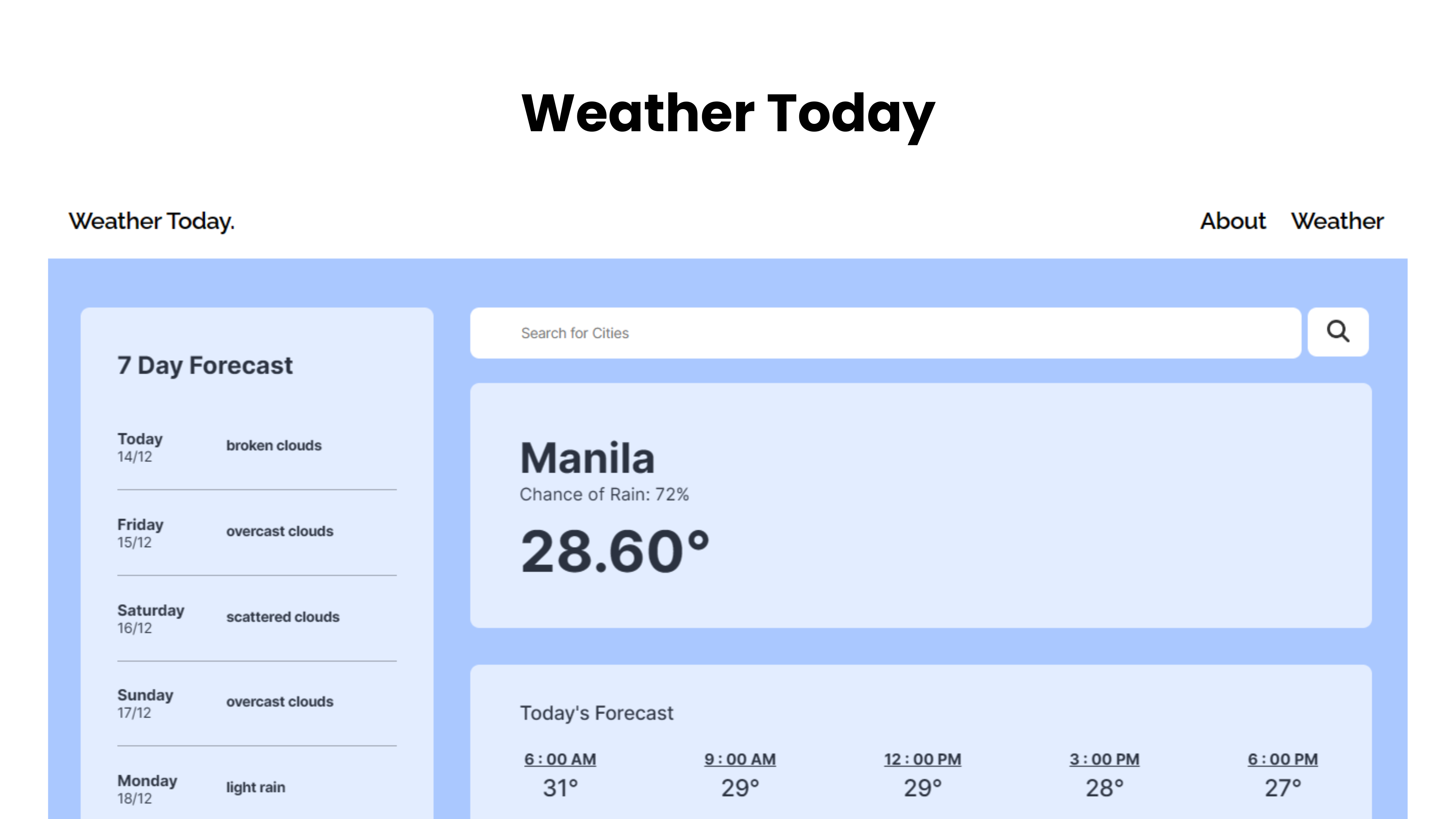 Weather Today is open-source weather reporting website project designed to provide users with accurate and real-time weather updates.